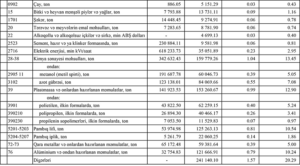 Azərbaycanın ən çox ixrac və idxal etdiyi mallar