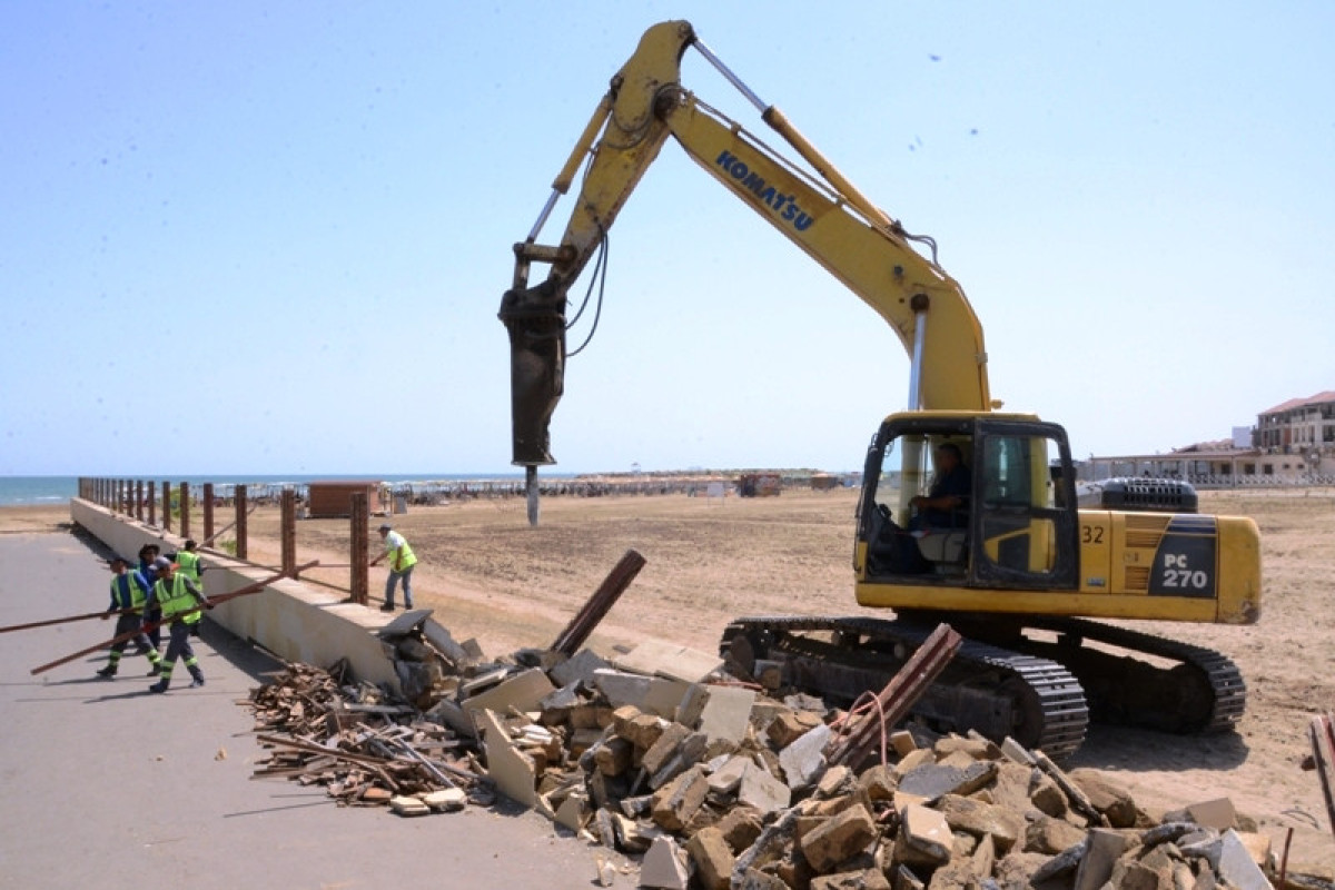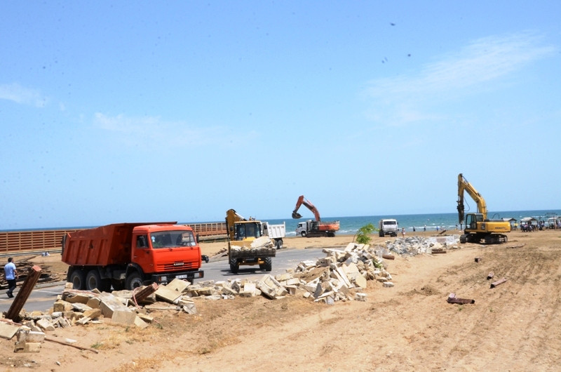 Dəniz sahilindəki qanunsuz hasar və tikililər sökülür