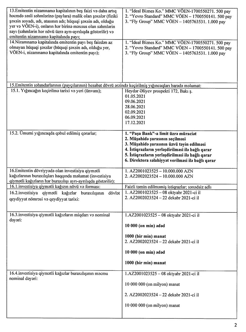 Xatırladaq ki, "Azərbaycan Supermarket" MMC ötən il istiqrazlarının yerləşdirilməsi üsulu ilə 20 milyon manat cəlb edib.