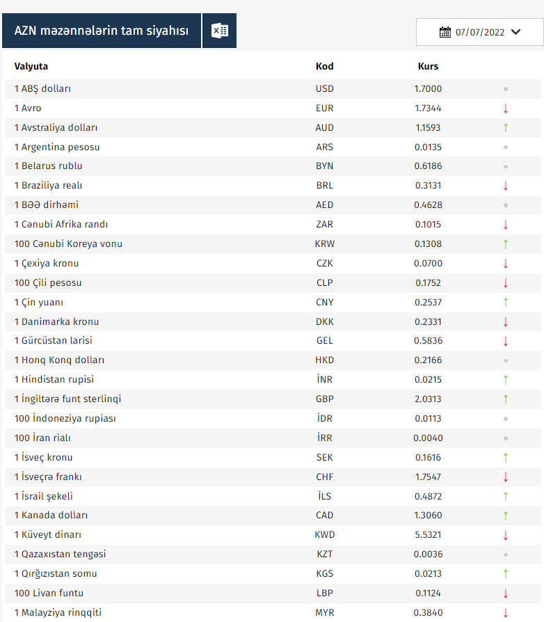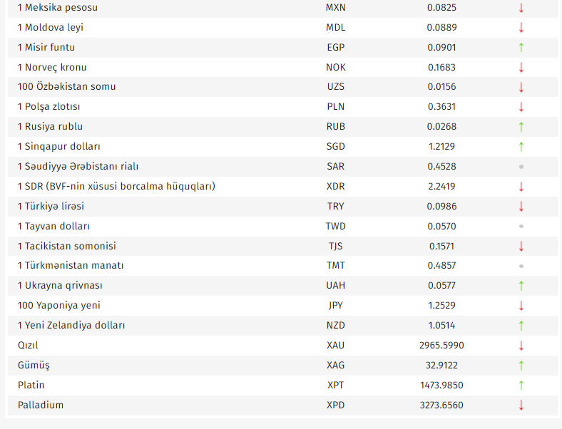 Rəsmi məzənnələr açıqlandı