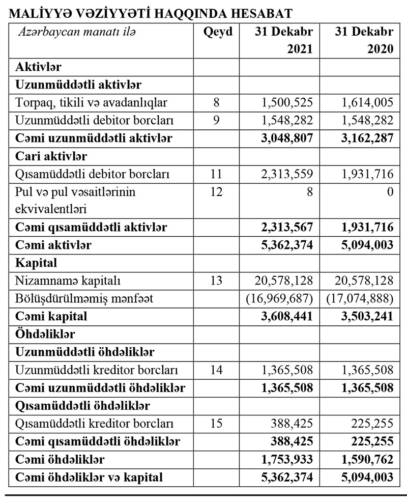 “Bakelektroqaynaq” ASC 2021-ci ili 105 min 200 manat xalis zərər ilə başa vurub. ASC 2020-ci ili 32 min 714 manat xalis zərər ilə bağlamışdı.