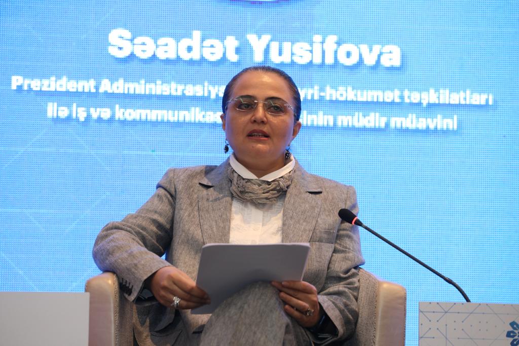 Paneldə çıxış edən Prezident Administrasiyasının Qeyri-hökumət təşkilatları ilə iş və kommunikasiya şöbəsinin müdir müavini Səadət Yusifova bildirib ki, Ümummilli Liderin həyata keçirdiyi fundamental islahatlar nəticəsində müstəqil Azərbaycanın informasiya siyasətinin prioritetləri müəyyən edilmiş, senzura ləğv edilmiş, media üzərində dövlət nəzarəti aradan qaldırılmış, onun maddi- texniki bazası möhkəmləndirilmiş, yeni inkişaf perspektivləri açılmışdır. Səadət Yusifova cəmiyyətin həyatında medianın rolunun durmadan artdığını deyib, medianın fəaliyyətində hər zaman obyektivlik, modernləşmə, rasionallıq, kreativlik, sosial məsuliyyət prinsiplərinin, milli maraqların daim rəhbər tutulmasının zəruriliyini vurğulayıb.