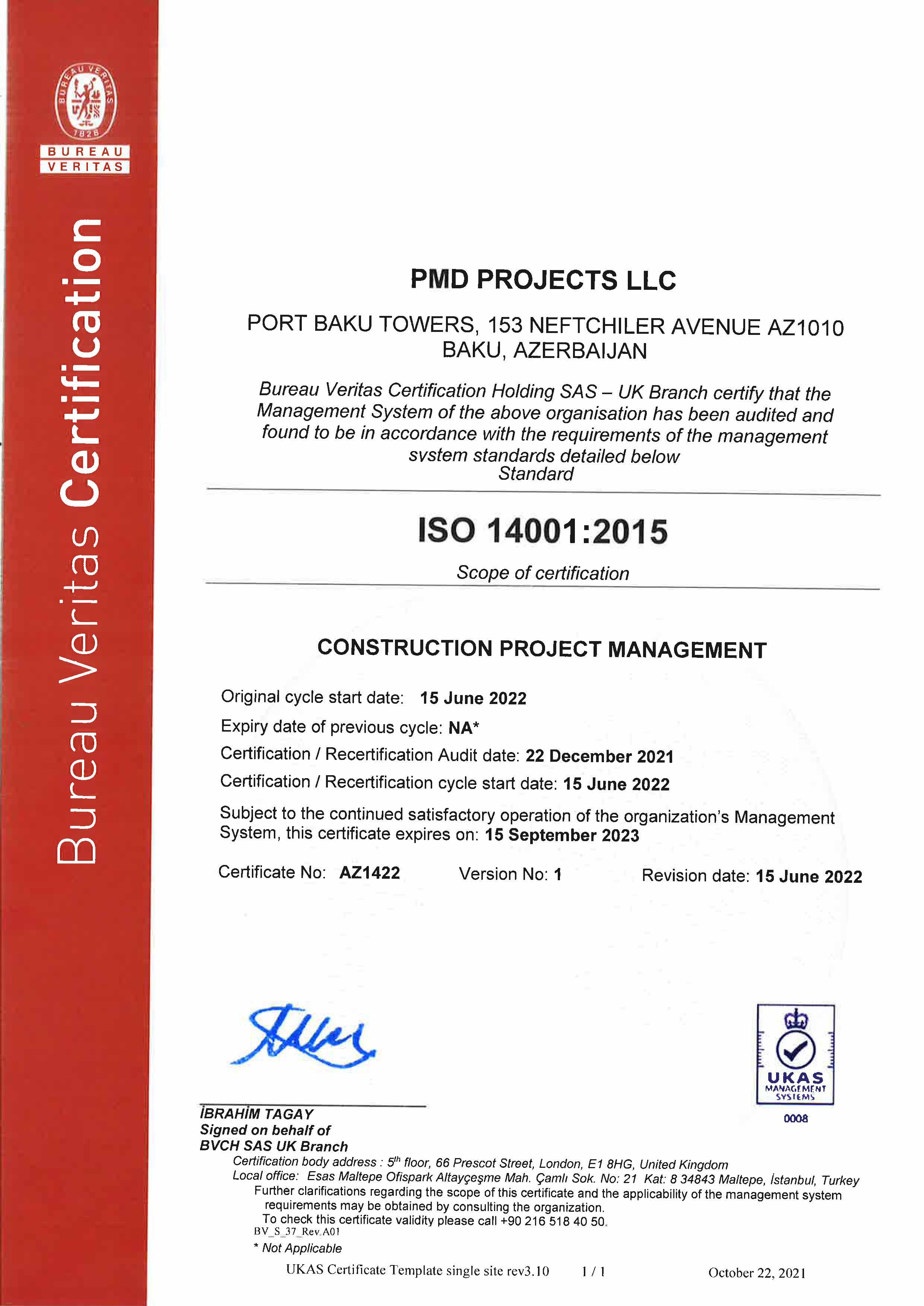 Sözügedən ISO 45001:2018 və ISO 14001:2015 sertifikatlarının təltif olunması, “PMD Projects” MMC-nin sağlamlıq və təhlükəsizlik risklərinin müəyyən edilməsi, ciddi şəkildə nəzarət edilərək idarəolunması, həmçinin resurslardan daha səmərəli istifadə edilməsi, tullantıların azaldılaraq ətraf mühitin mühafizəsi üzrə beynəlxalq standartların tələblərinə cavab verdiyinin sübutudur.