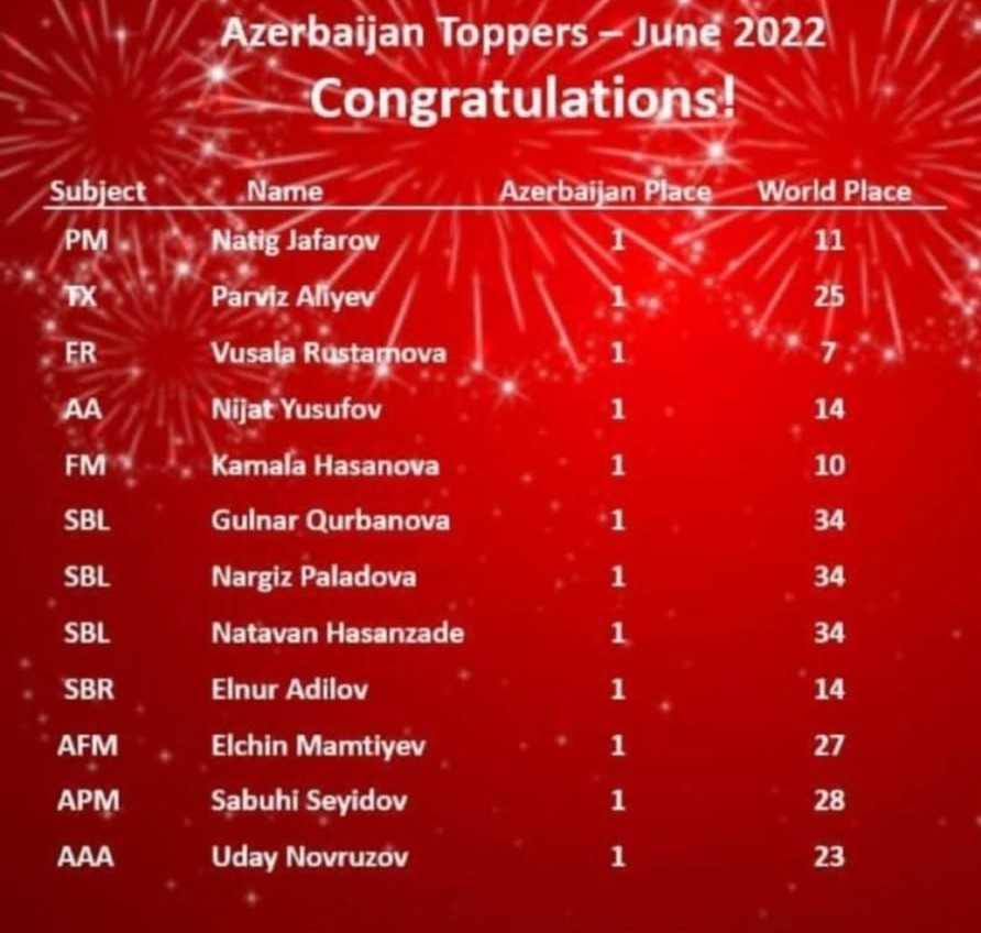 Azərbaycan üzrə 1-ci, dünya üzrə isə 11-ci olub