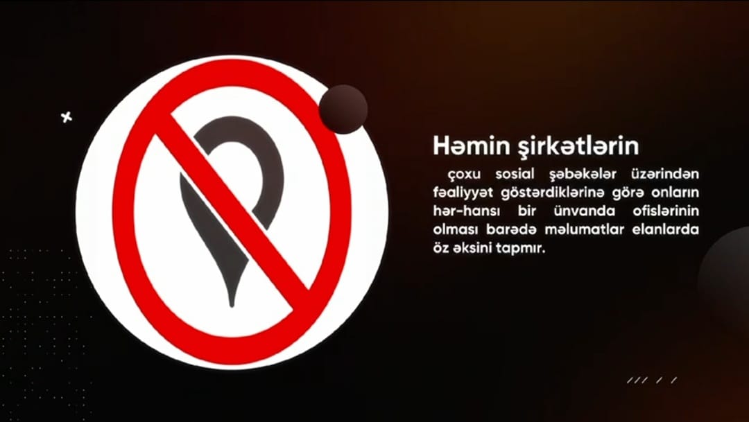 Qeyd edilib ki, həmin şirkətlərin çoxu sosial şəbəkələr vasitəsi üzərindən fəaliyyət göstərdiyinə görə onların hər hansı bir ünvanda ofislərinin olması barədə məlumatlar elanlarda öz əksini tapmır.
