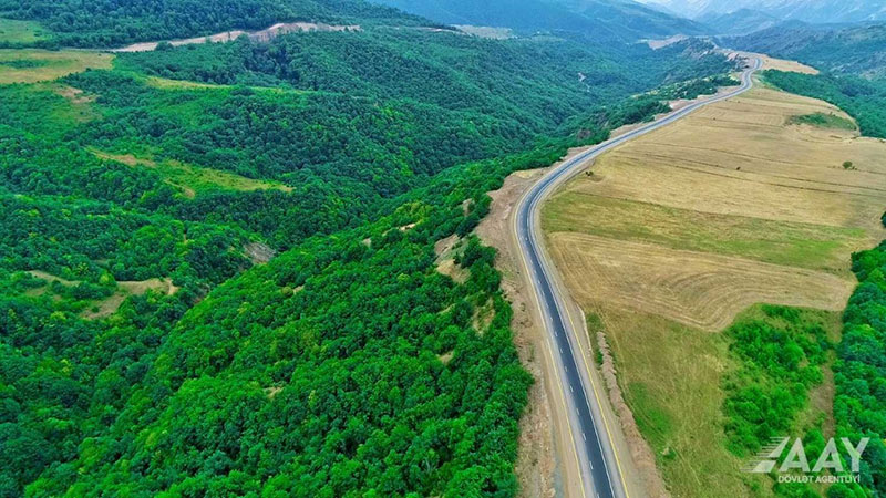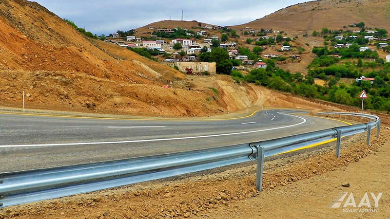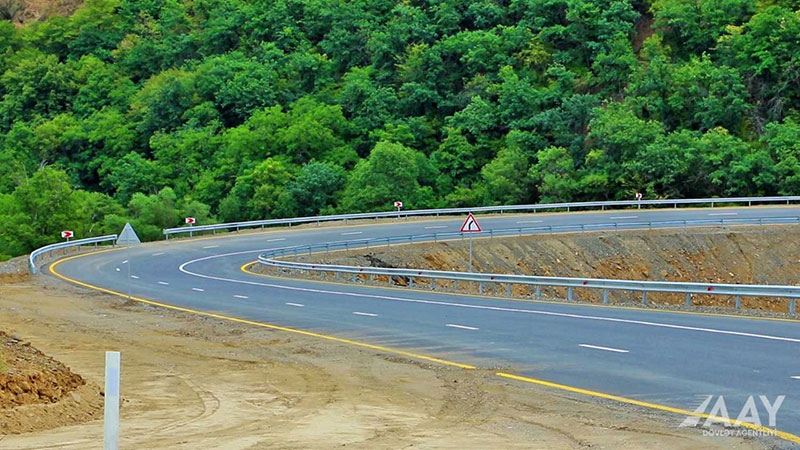 Daha sonra “İnşaat Norma və Qaydaları”na uyğun olaraq yol geyimi inşa edilib, asfalt-beton örtüyü döşənib, yol çiyinləri bərkidilib.