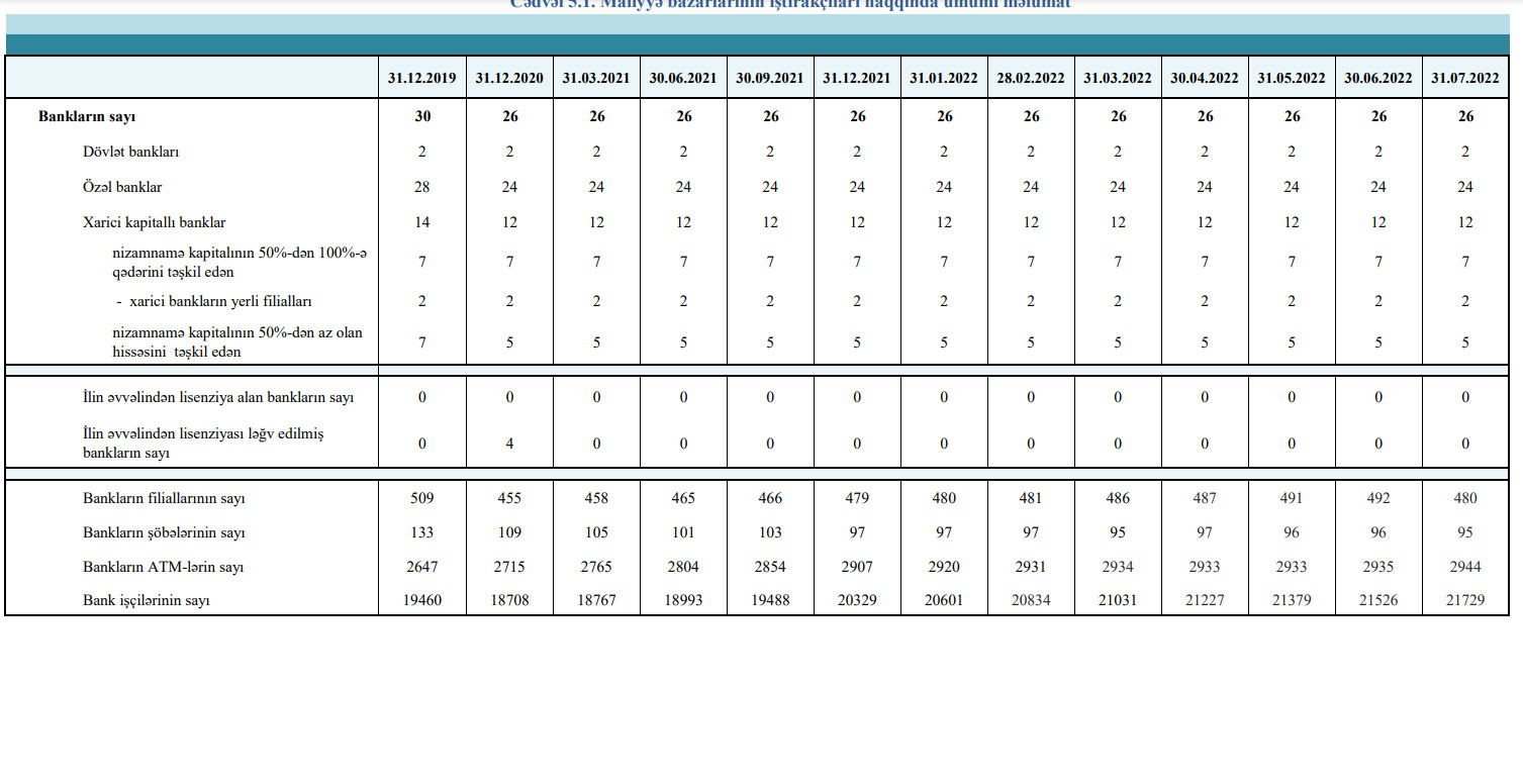 İyul ayında bank şöbələrinin sayı 1 şöbə azalaraq 96-dan 95-ə düşüb.