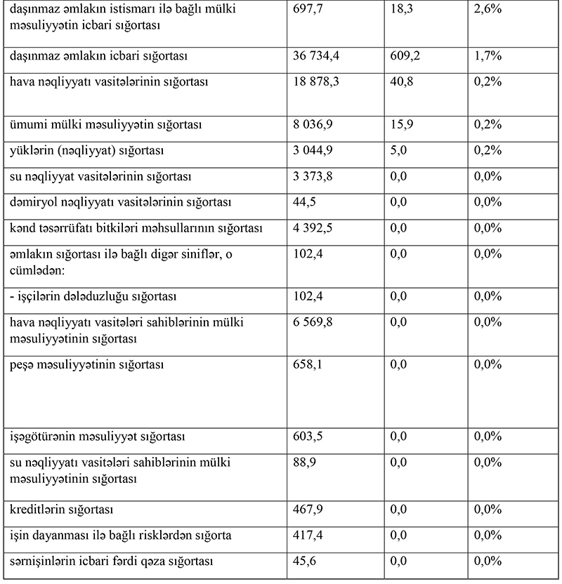 Qeyd edək ki, sığorta növlərinin zərərliliyi üzrə göstəricilər daha ətraflı cədvəldə qeyd edilib.