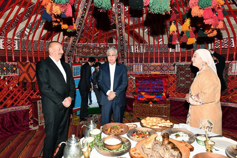 Avqustun 24-də Azərbaycan Respublikasının Prezidenti İlham Əliyev və Qazaxıstan Respublikasının Prezidenti Kasım-Jomart Tokayev Azərbaycan-Qazaxıstan diplomatik əlaqələrinin 30 illiyi münasibətilə Dənizkənarı Milli Parkda qurulmuş “Qazax yurtası” ilə tanış olublar.