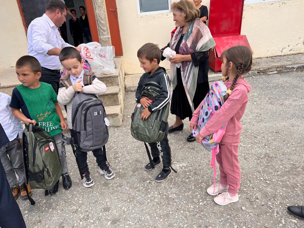 Belə ki, Şabran rayonu üzrə Xəlfələr, Dağbilici, Xəlilli, Çölquşçu, Çayqaraqaşlı, Hacıqaraqaşlı, Aygünlü və Xırdaoymağa kənd məktəblərində, Siyəzən rayonu üzrə isə Məşrif, Qozağacı, Dağqyşçu, Ramazanov adına 5 saylı şəhər məktəbi, Gilgilçay və Tağay orta məktəblərində 1-ci sinfə gedəcək bütün şagirdlərinə məktəbli çantası və lazım olan bütün dərs ləvazimatları təqdim olunub.