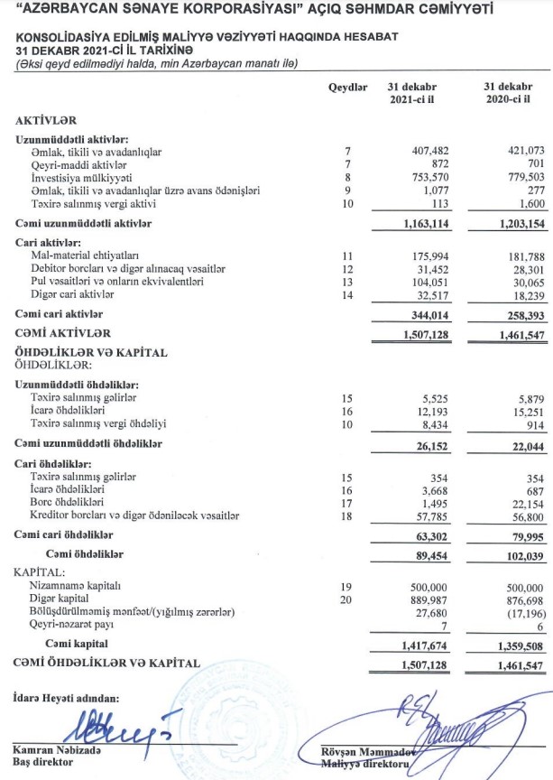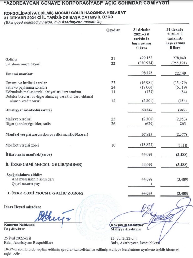 “ASK” Açıq Səhmdar Cəmiyyətinin (Azərbaycan Sənaye Korporasiyası) 2021-ci il 44 milyon 99 min manat xalis mənfəət ilə başa vurub. Halbuki, qurum 2020-ci ili 3 milyon 488 min manat xalis zərər ilə başa vurmuşdu.