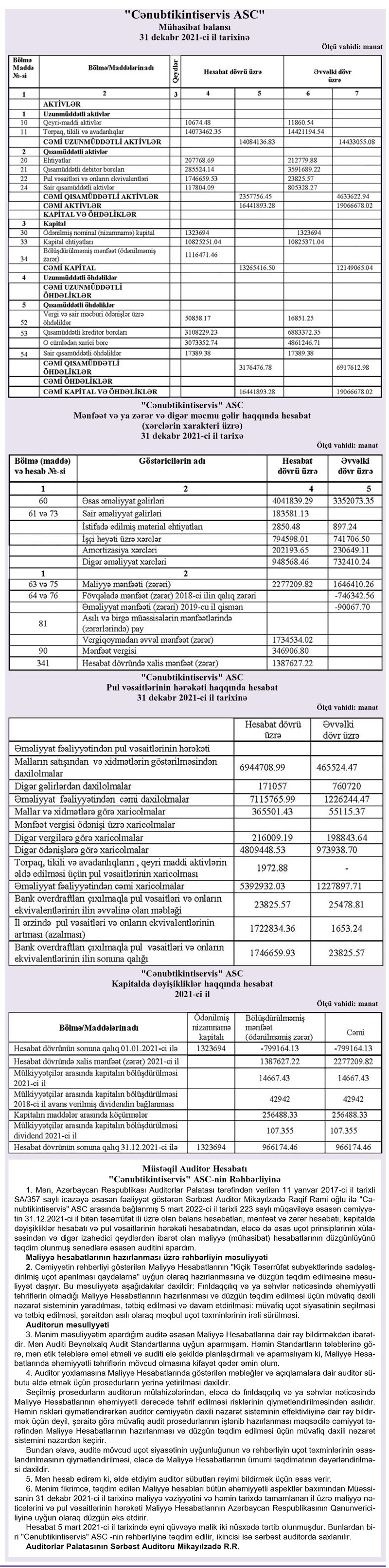 "Cənubtikintiservis" 2021-ci ili xalis mənfəət ilə başa vurub