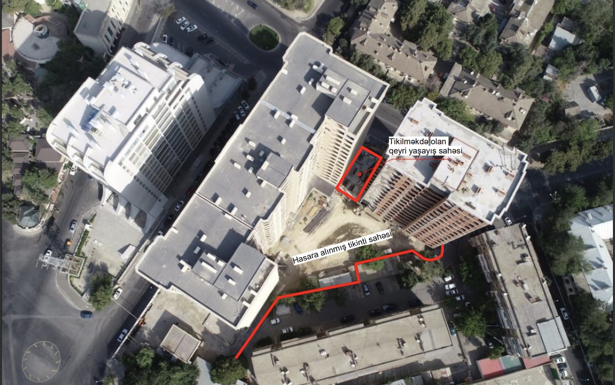 Nəzərinizə çatdırırıq ki, qeyd olunan ünvanda “Vesta Construction” MMC tərəfindən inşaat işləri aparılan obyektdə mövcud tikinti layihəsindən kənarlaşmalar müşahidə edilmişdir. Belə ki, inşa edilən çoxmərtəbəli yaşayış binasındakı təxliyyə yolları bağlanmış və təyinat üzrə istifadə olunmur. Fövqəladə vəziyyətin yarandığı təqdirdə sözügedən binaya və onun həyətyanı ərazisinə xüsusi təyinatlı avtomobillərin və mexanizmlərin yaxınlaşması, belə bir şəraitin yaranmasına səbəb olan maneələrin operativ aradan qaldırılması mümkün deyil.