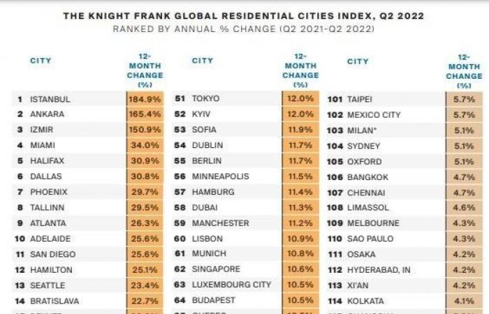 Marja.az Dünyanın aparıcı daşınmaz əmlak məsləhət şirkətlərindən biri olan "Knight Frank"ın araşdırmasına istinadən xəbər verir ki, 2021-ci ilin iyunundan 2022-ci ilin iyununa qədər mənzil qiymətləri Ankarada 165%, İzmirdə isə 151% artıb.