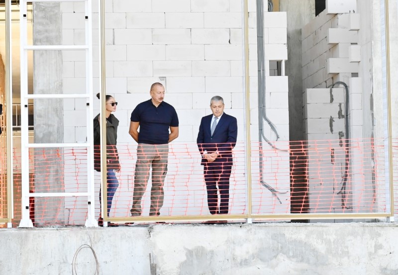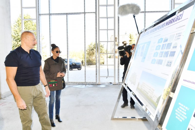 Azərbaycan Respublikasının Prezidenti İlham Əliyev və birinci xanım Mehriban Əliyeva Şuşa şəhərində hotel və konfrans mərkəzində aparılan tikinti işləri ilə tanış olublar.