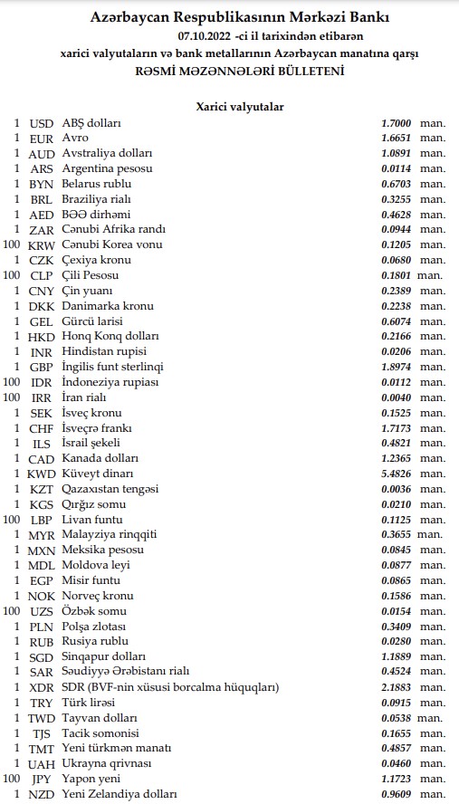 azn kurs məzənnə rəsmi