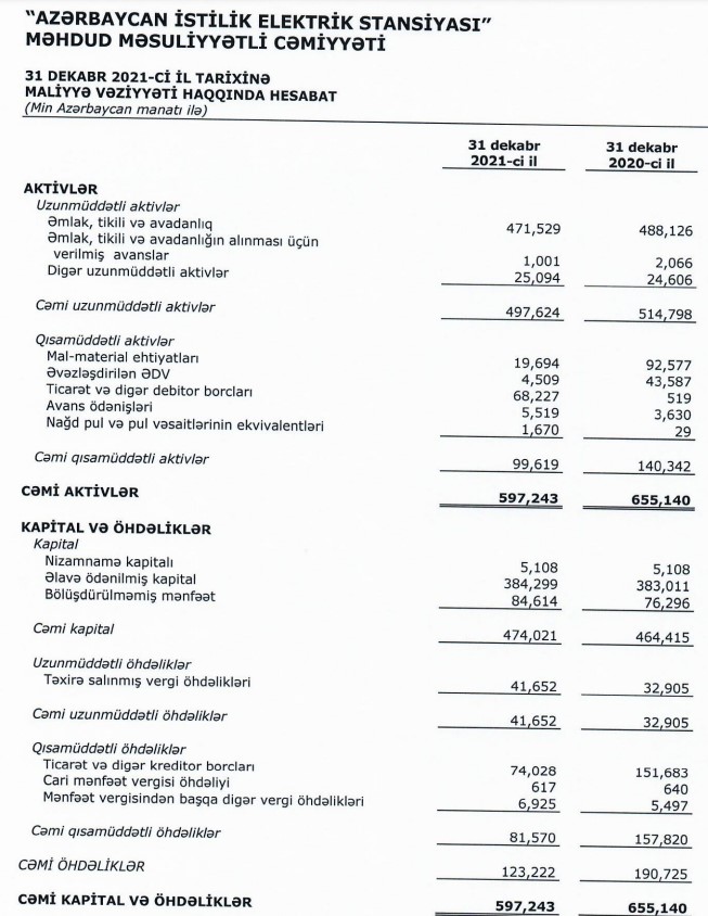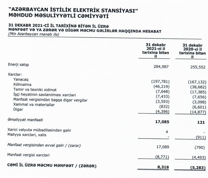 Cənubi Qafqazın ən böyük istilik elektrik stansiyasının sahibi olan "Azərbaycan İstilik Elektrik Stansiyası" MMC 2021-ci ili 8 milyon 318 min manat xalis mənfəət ilə başa vurub. Halbuki, MMC 2020-ci ili 5 milyon 283 min manat xalis zərər ilə bağlamışdı.