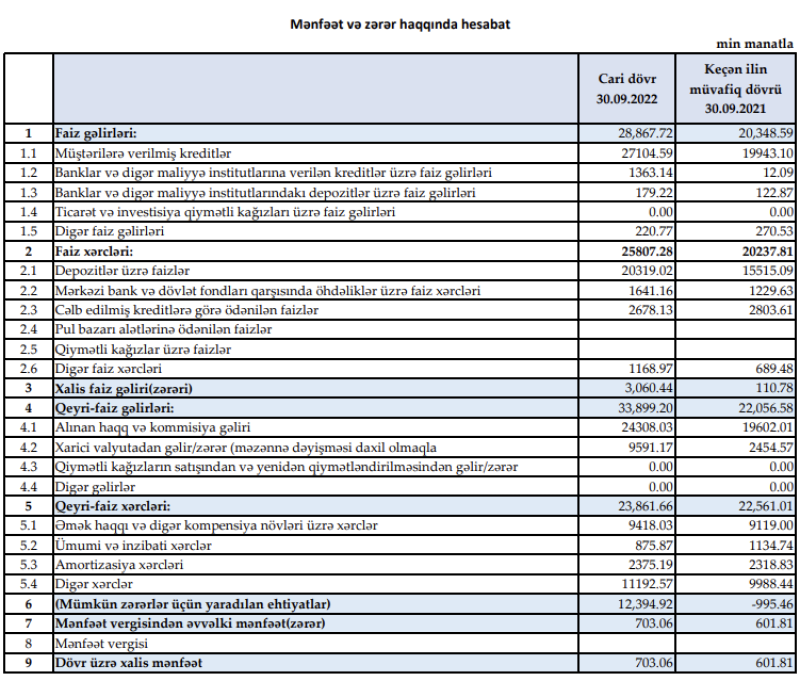"Muğanbank" 2022-nin 9 ayını mənfəətlə başa vurub