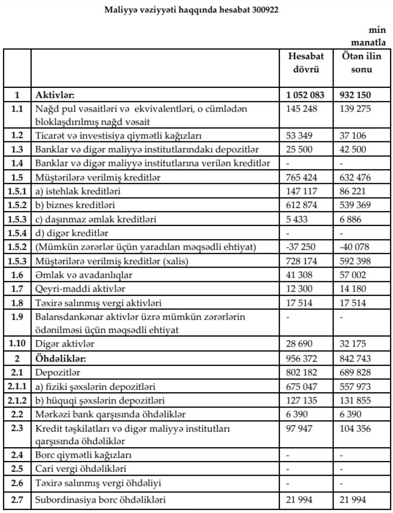 DEPOZİTLƏR 800 MİLYON MANATI AŞIB
