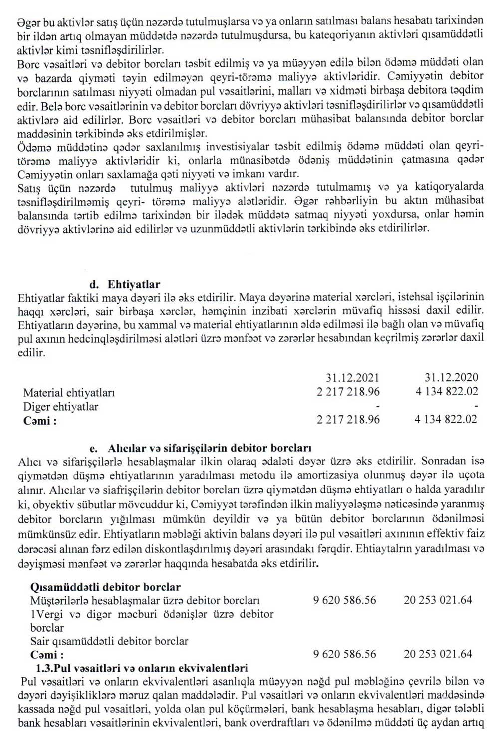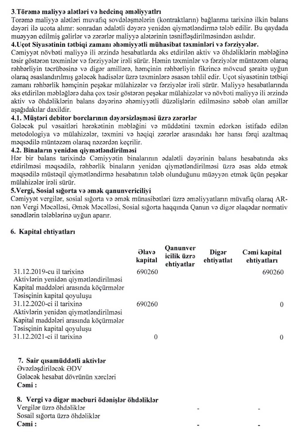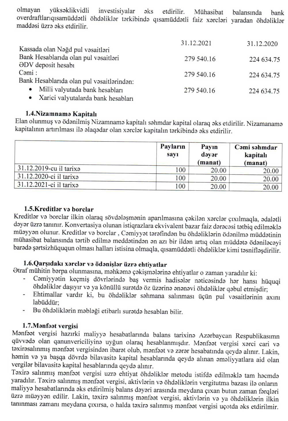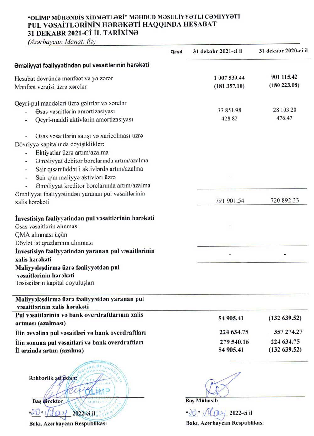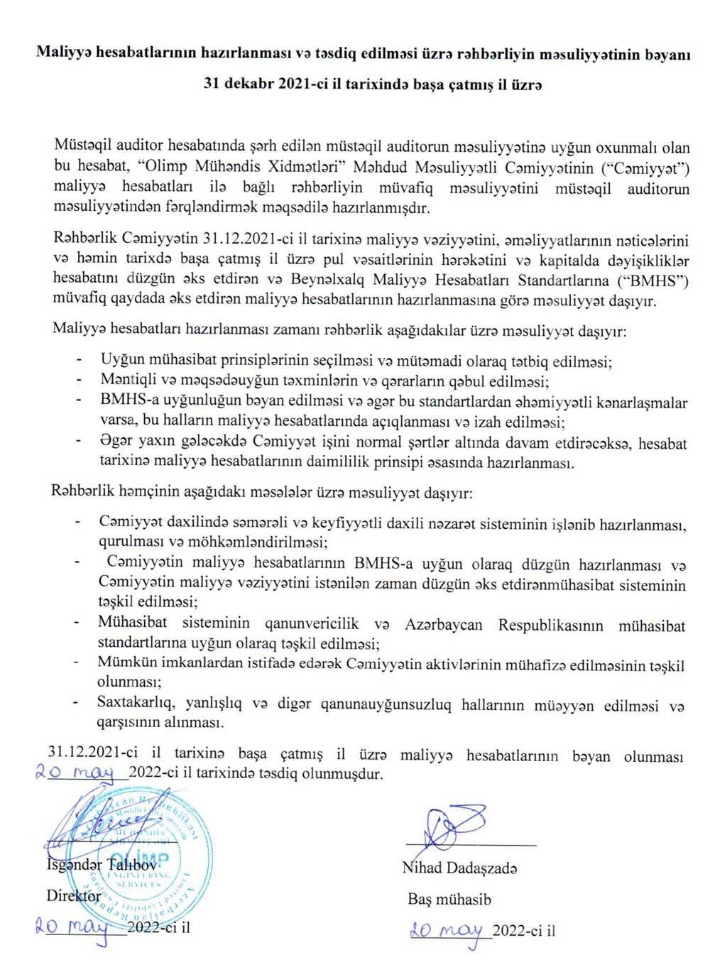 "Olimp Mühəndis Xidmətləri" MMC-nin 31 dekabr 2021-ci il tarixinə maliyyə hesabatları və müstəqil auditor rəyi.