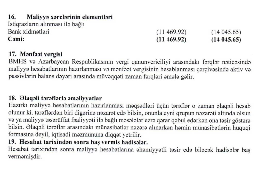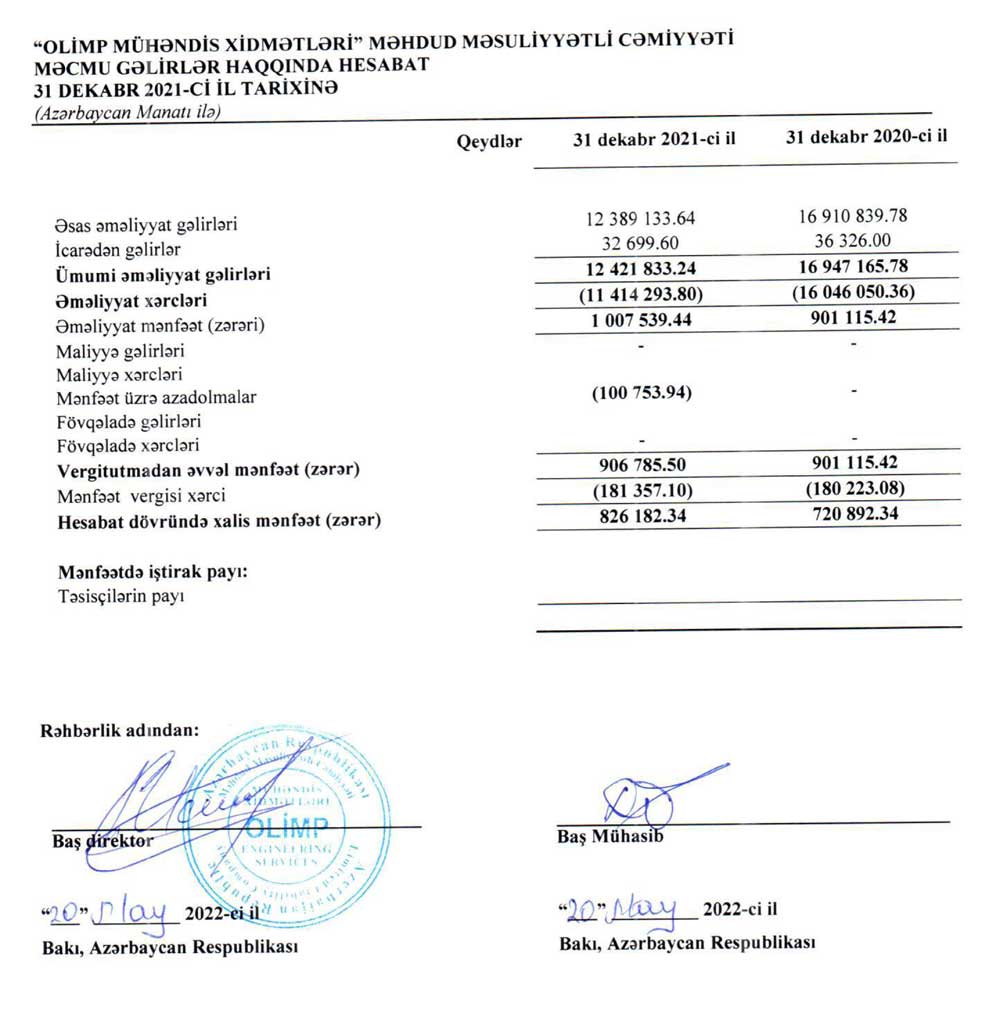 "Olimp Mühəndis Xidmətləri" MMC 2021-ci il üzrə maliyyə göstəricilərini açıqladı