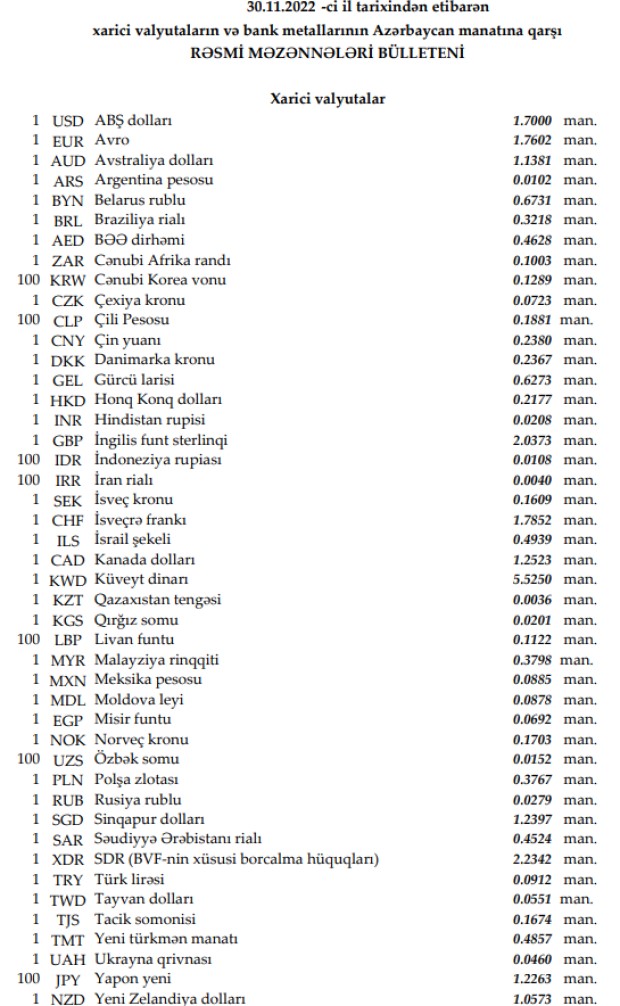 Rəsmi məzənnələr açıqlandı