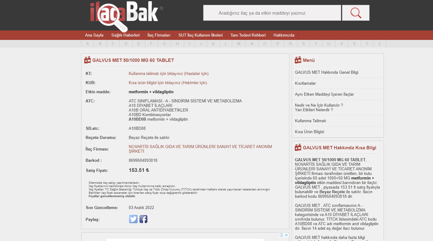 Diabet xəstələrinin müalicəsində istifadə olunan dərmanın bir qutusu Türkiyədə 153,51 TL-yə ( 13 manat 99 qəpik) satılır. Yəni Bakıda bir qutuya verəcəyimiz pulla qardaş ölkədə təxminən 5 qutu dərman almaq mümkündür.