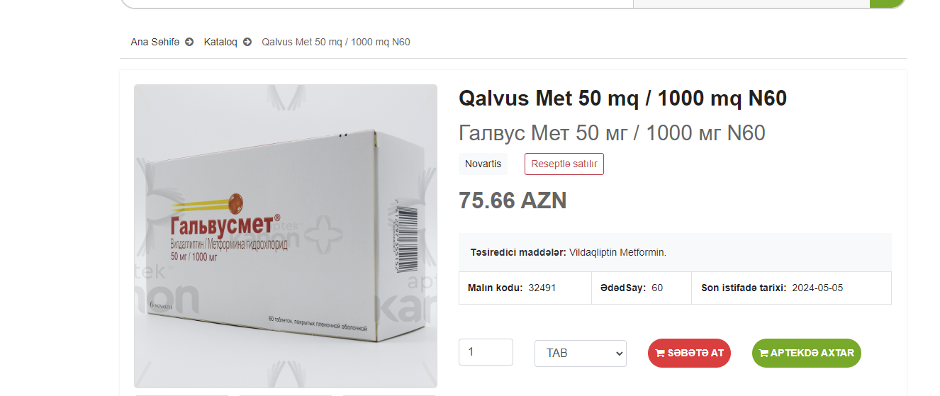 Sosial şəbəkələrdə daha bir dərmanın qiymətinin qalxması müzakirələrə səbəb olub. Bildirilib ki, Bakıdakı apteklərdə 75 manat 66 qəpiyə satılan “Qalvus Met” adlı dərman Türkiyədə qat-qat ucuzdur.