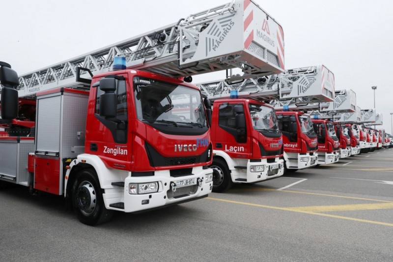 Prezident İlham Əliyevə məlumat verilib ki, işğaldan azad edilmiş ərazilərdə yanğından mühafizə üçün Fövqəladə Hallar Nazirliyi tərəfindən “KamAZ” markalı 100 yanğınsöndürən və “İveco” markalı 50 xüsusi təyinatlı yanğınsöndürən avtomobil alınıb. “İveco” markalı avtomobillərdən 9-u artıq idxal olunub, 41-nin idxalı isə 2023-cü ilin birinci rübündə nəzərdə tutulur.