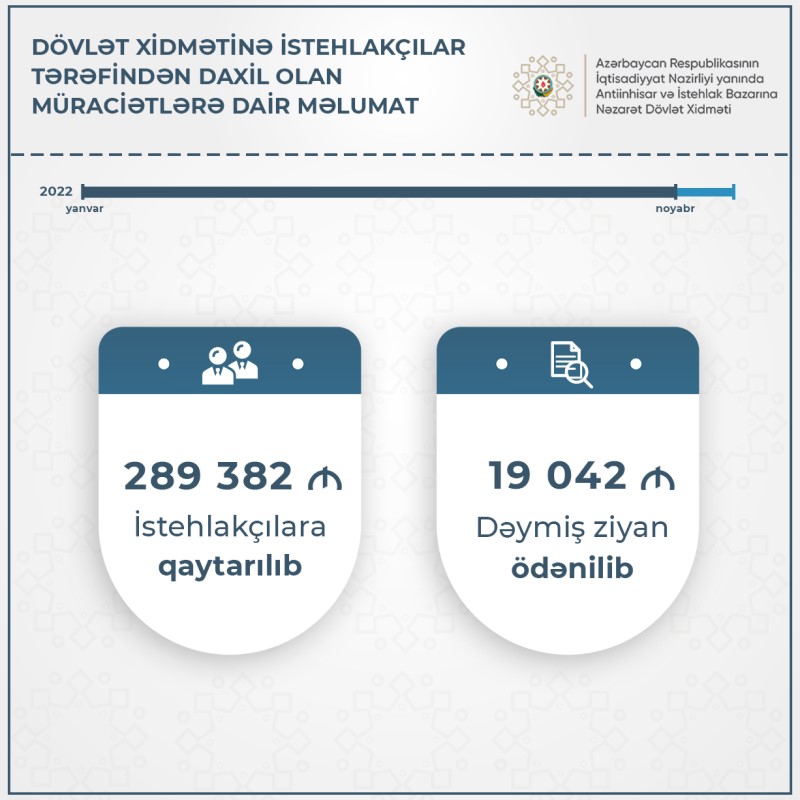 Qeyd edilib ki, nəticədə 289 min manat istehlakçılara qaytarılıb, 19 min manat dəymiş ziyan ödənilib.