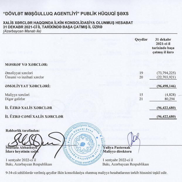 Əmək və Əhalinin Sosial Müdafiəsi Nazirliyi yanında Dövlət Məşğulluq Agentliyi 2021-ci ili 96 milyon 422 min manat zərərlə başa vurub.