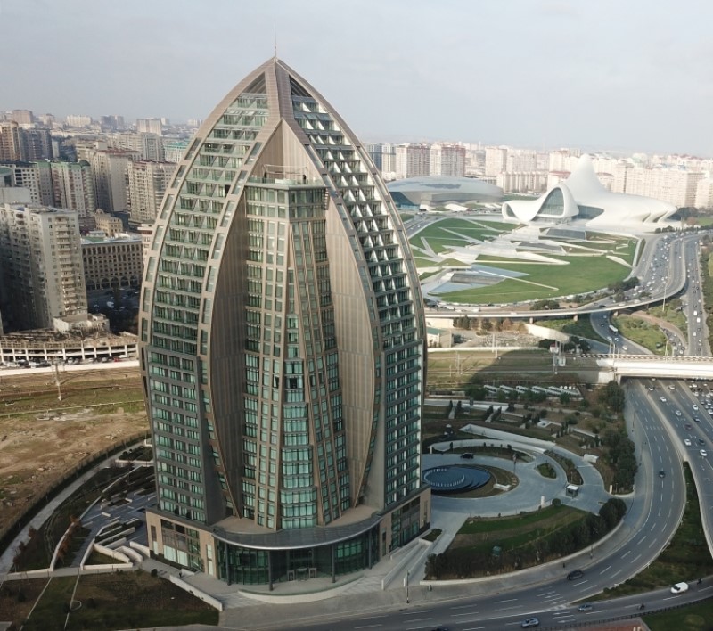 14 mərtəbəsində otel, yuxarı 19 mərtəbəsində isə mənzillər yerləşir - Prezident açılışında iştirak edib