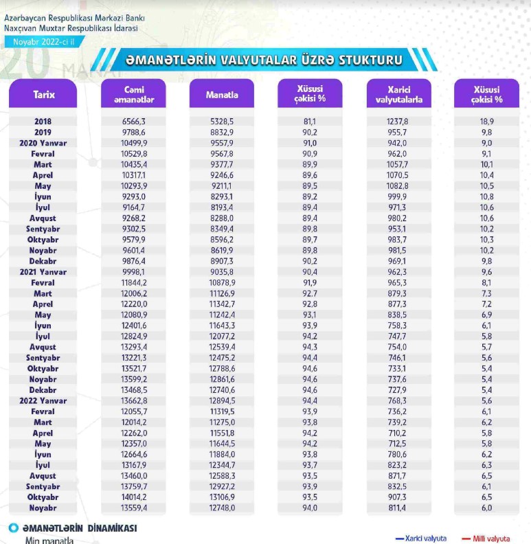 Azərbaycan Mərkəzi Bankı Naxçıvan Muxtar Muxtar Respublikası İdarəsi 30 noyabr 2022-ci il tarixinə muxtar respublkanın bank sektoru barədə əsas göstəriciləri açıqlayıb.