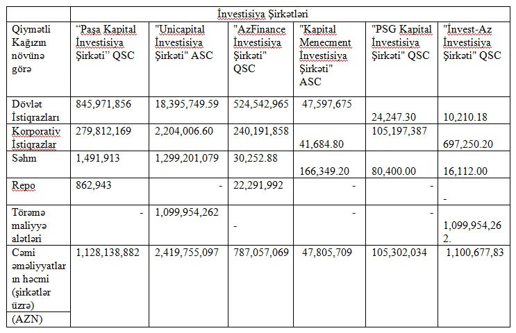 Birjadan “Marja”ya daxil olmuş məlumata görə, 2017-ci il Yanvar-İyun ayları ərzində ən çox dövriyyə (2,419,755,097.72) "Unicapital İnvestisiya Şirkəti"ində olub. Növbəti yerləri isə “Paşa Kapital İnvestisiya Şirkəti” və "İnvest-Az İnvestisiya Şirkəti" tutublar.