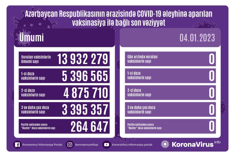 Azərbaycanda son sutkada koronavirus (COVID-19) əleyhinə vaksin vurulmayıb.
