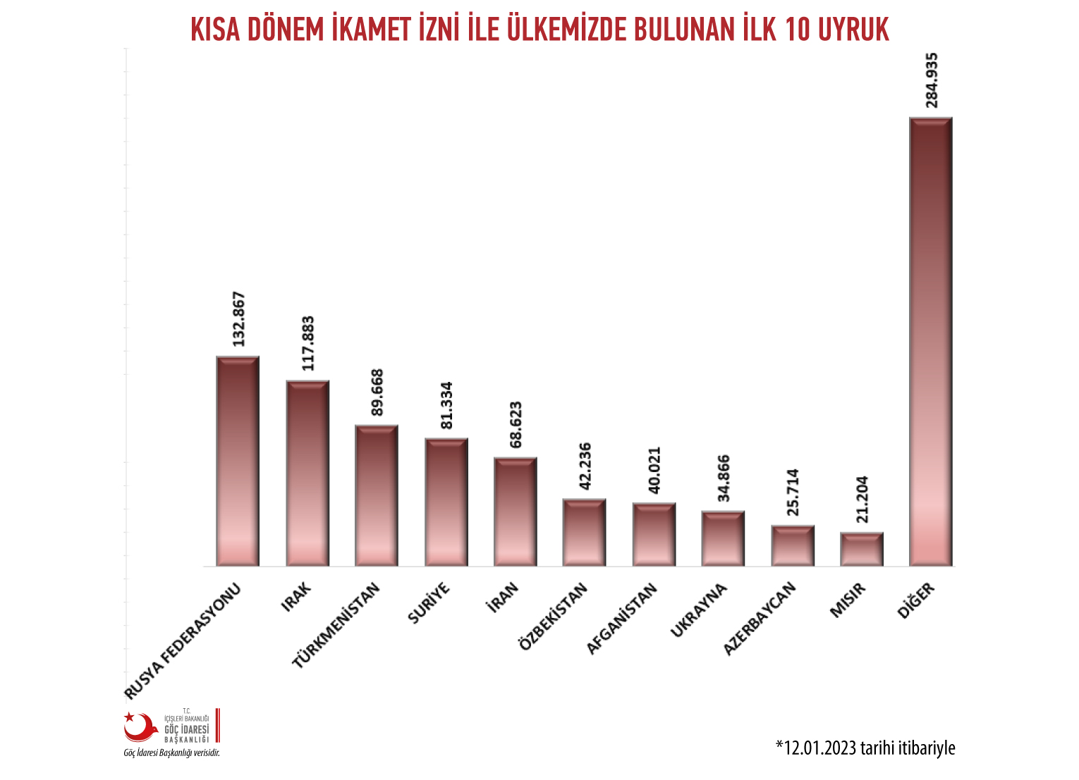 1-ci yerdə 153 min 639 icazə ilə ruslar, 2-ci yerdə 131 min 132 icazə ilə iraqlılar, 3-cü yerdə 115 min 404 icazə ilə türkmənlər, 4-cü yerdə 100 min 263 icazə ilə suriyalılar, 5-ci yerdə 94 min 869 icazə ilə iranlılardır.