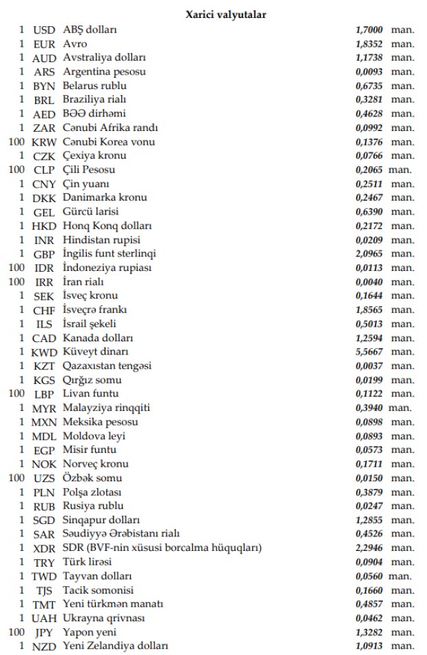 Rəsmi məzənnələr açıqlandı