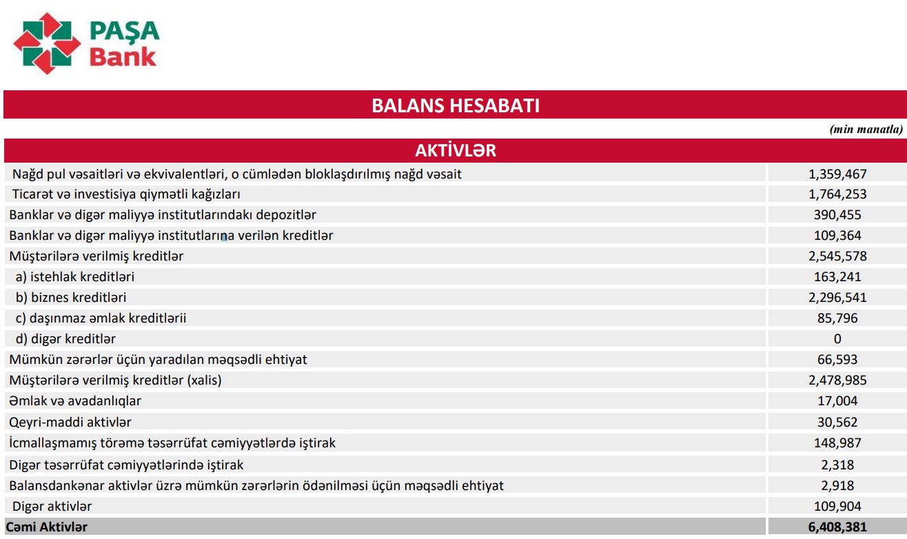HƏMÇİNİN OXU: Ötən il "PAŞA Bank"ın aktivləri 2 milyard manatdan çox artıb, 150 milyon manata yaxın xalis mənfəət əldə edib