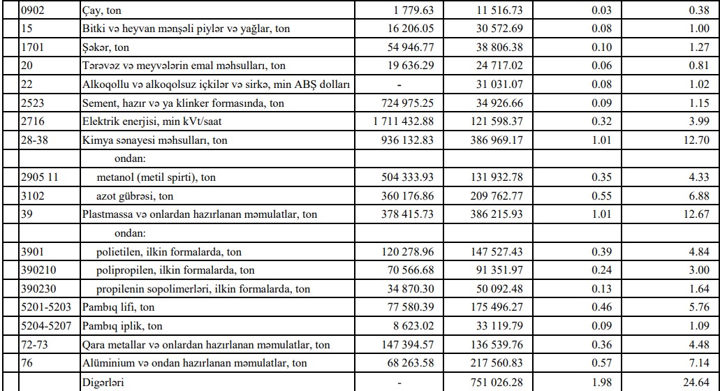 Azərbaycanın ən çox ixrac və idxal etdiyi mallar - YENİ SİYAHI