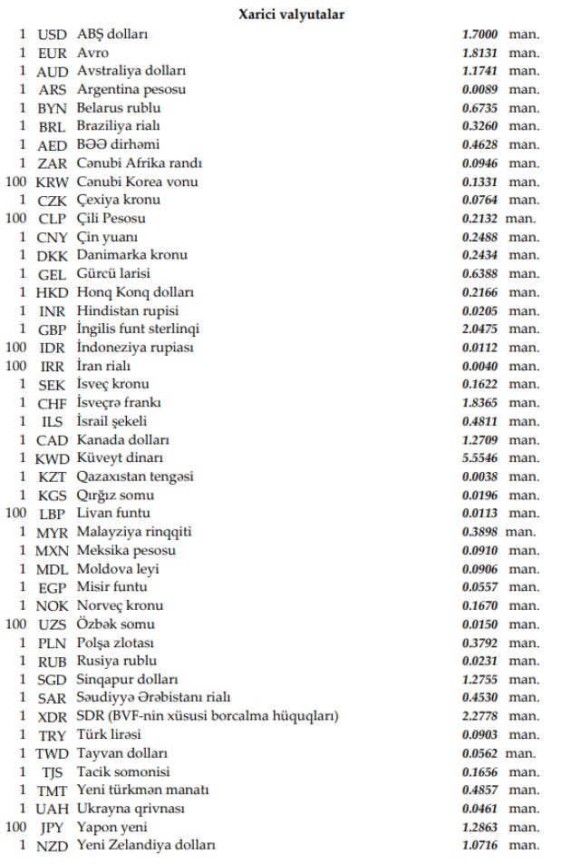 Rəsmi məzənnələr açıqlandı