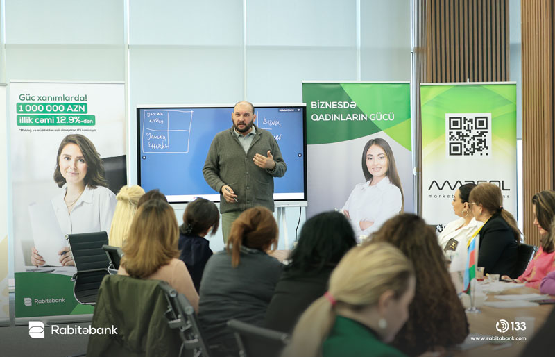 (®️) “Rabitəbank” ASC və Kiçik və Orta Biznesin İnkişafı Agentliyinin (KOBİA) təşəbbüsü və təşkilatçılığı, Azərbaycan Sahibkarlar (İşəgötürənlər) Təşkilatları Milli Konfederasiyası, Azərbaycanda Qadın Sahibkarlığının İnkişafı Assosiasiyası və "Marsol" MMC-nin dəstəyi ilə həyata keçirilən “Biznesdə Qadınların Gücü” layihəsi çərçivəsində qadın sahibkarlar üçün təlimlər davam edir.