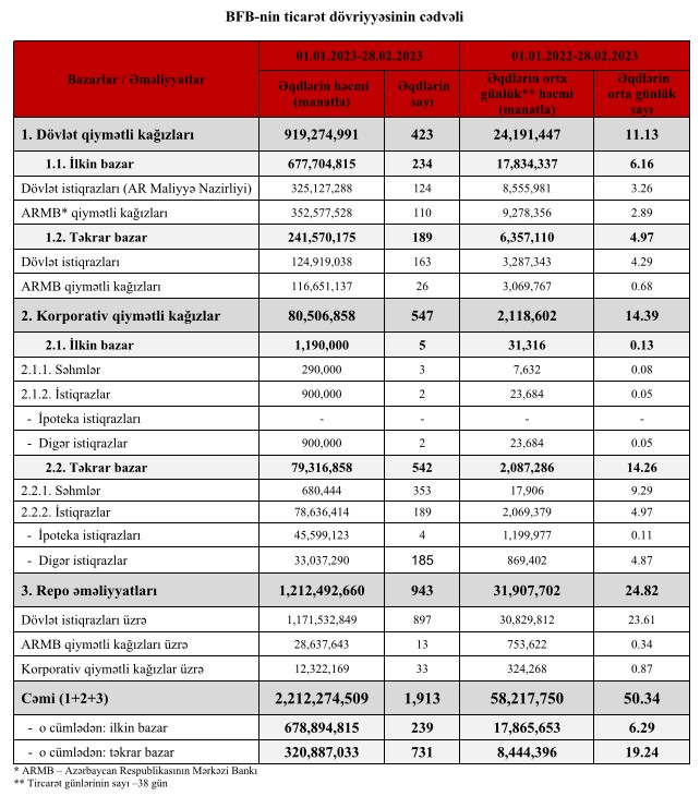 2023-cü ilin ilk 2 ayı ərzində (yanvar-fevral) Maliyyə Nazirliyi dövlət istiqrazlarının yerləşdirilməsi yolu ilə 325 milyon 127 min 288 manat cəlb edir.