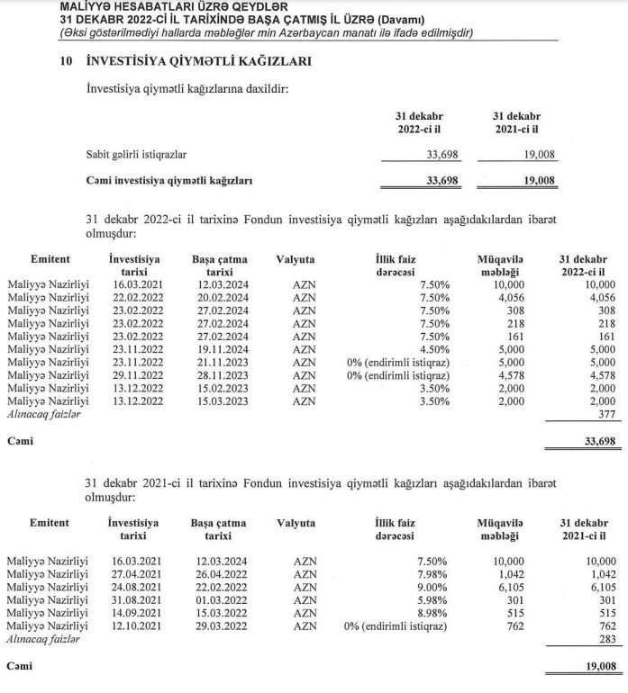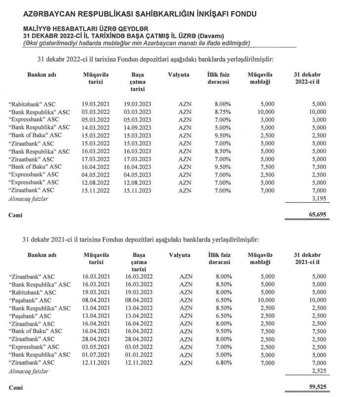 Fond banklara pulunu 5% – 9.50% civarında faizlər ilə yatırıb.