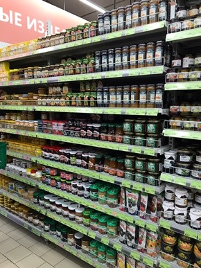 Ümumi sahəsi 529 m² olan Azərbaycan Ticarət Evinin 364 m²-lik sahəsində Azərbaycan məhsullarının daimi sərgisi fəaliyyət göstərir. Sərgidə Azərbaycan müəssisələrinin istehsal etdiyi müxtəlif növ ərzaq və qeyri-ərzaq məhsulları, o cümlədən meyvə-tərəvəz və onlardan emal olunmuş məhsullar (meyvə şirələri, kompotlar, konservlər, mürəbbələr, turşular, bitki yağları), çay, mineral sular, spirtli içkilər (şərab, konyak), xalça, tekstil, ipək və kosmetika malları, elektrik avadanlıqları, plastik məmulatlar və s. nümayiş olunur.