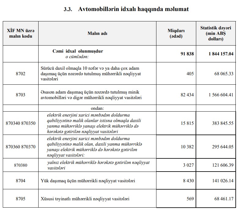Bu, indiyədək 1 il ərzində Azərbaycana ən böyük sayda və dəyərdə avtomobil idxalıdır.