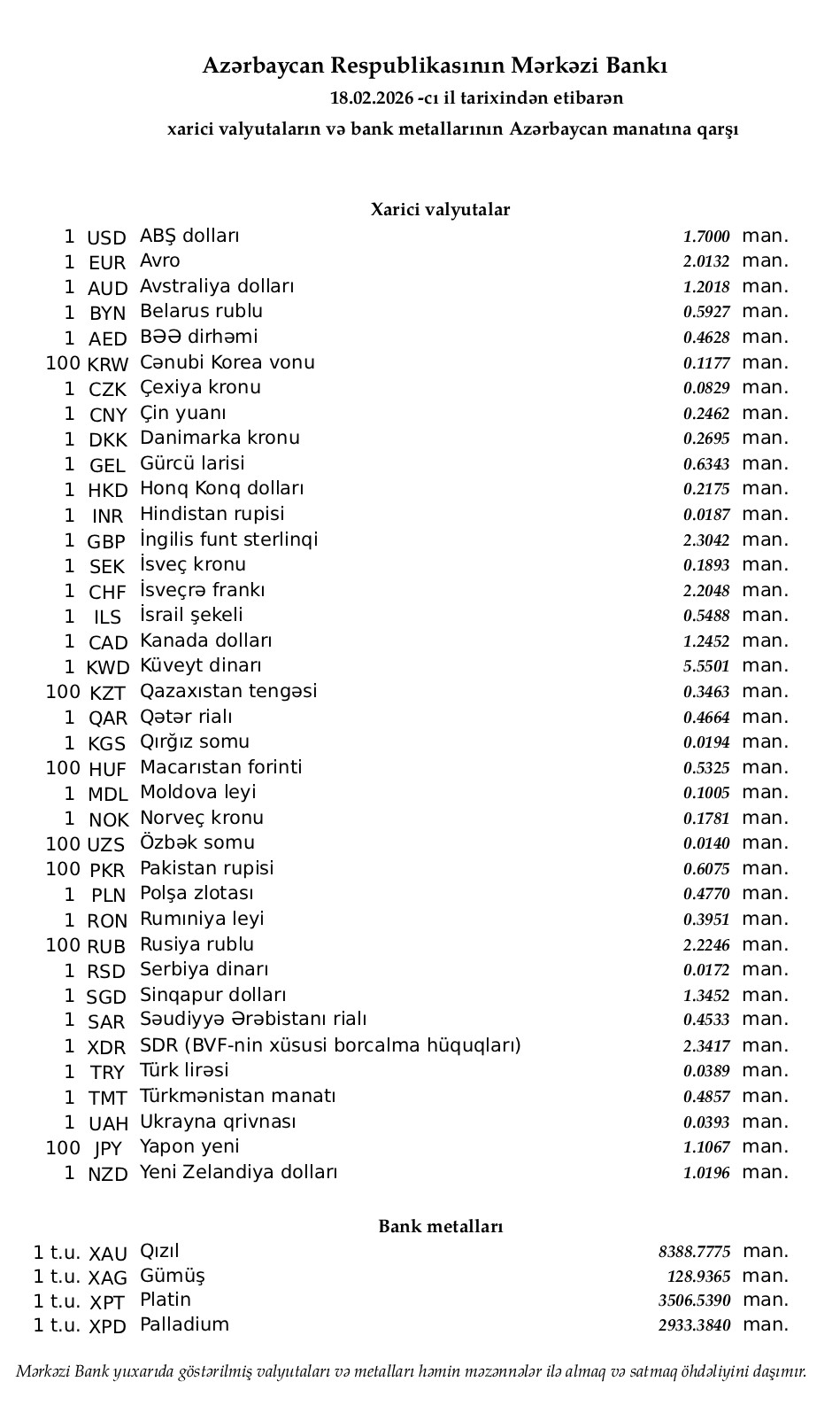 Dolların sabah üçün rəsmi məzənnəsi müəyyən edilib