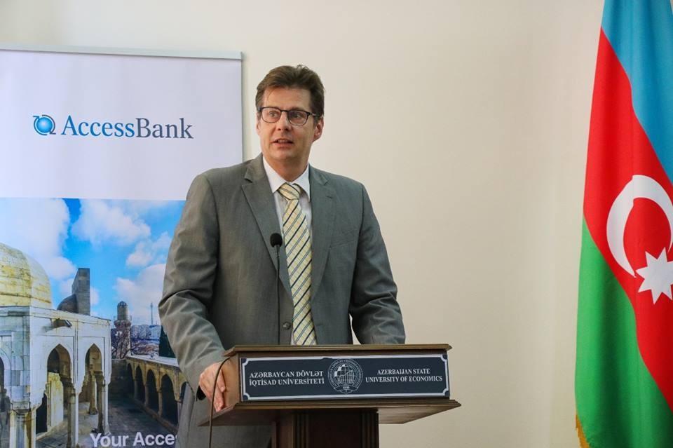 "AccessBank"ın İdarə Heyəti sədrinin müavini/Baş maliyyə inzibatçısı Albrext Sabelus qeyd edib ki, ingilis dilinin biznes istiqamətinin öyrənilməsi tələbələr üçün olduqca vacibdir: "Mən şadam ki, "AccessBank" belə bir vacib layihəyə dəstək verir. Bilirsiniz ki, "AccessBank"ın komandasında kifayət qədər UNEC məzunu var. "UNEC Business Conversation Club"un iştirakçısı olanların bəziləri də gələcəkdə bizim komandamıza qoşula bilər. Bu baxımdan zamanın tələbi olan ingilis dilinə və onun biznes istiqamətinə yiyələnmək şərtdir. Çox məmnunam ki, tələbələr bu layihədən maksimum faydalandı və yeni biliklər əldə etdi".
