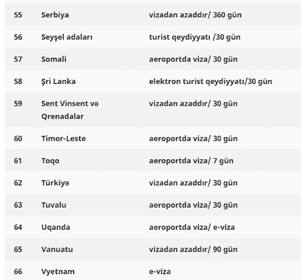 Başqa sözlə, “xarici pasport”u olanlar da bu ölkələrə vizasız gedə bilərlər: