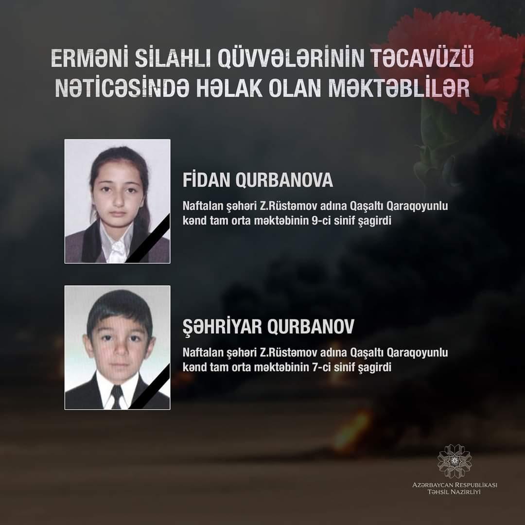 Təhsil Nazirliyindən verilən məlumata görə, bu təcavüz nəticəsində həlak olanlardan ikisi məktəblidir.