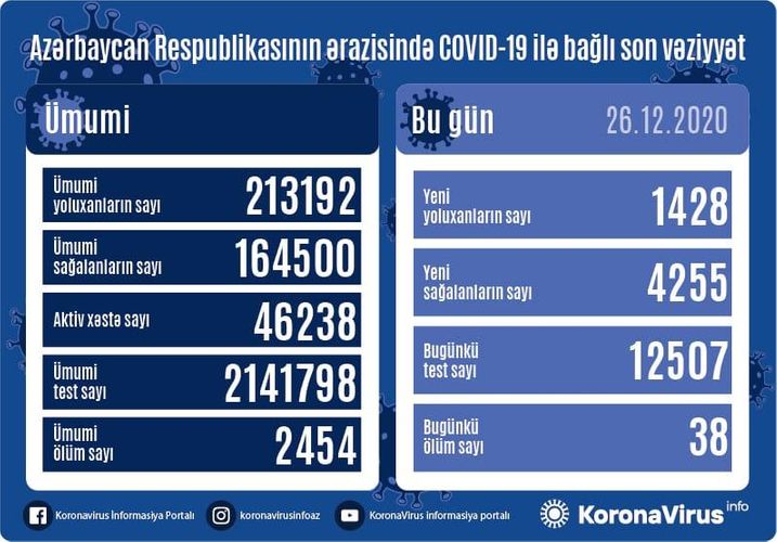 Qeyd edək ki, 25 dekabr 2020-ci il tarixində isə son gün ərzində 1703 yoluxma faktı qeydə alındığı açıqlanmışdı.